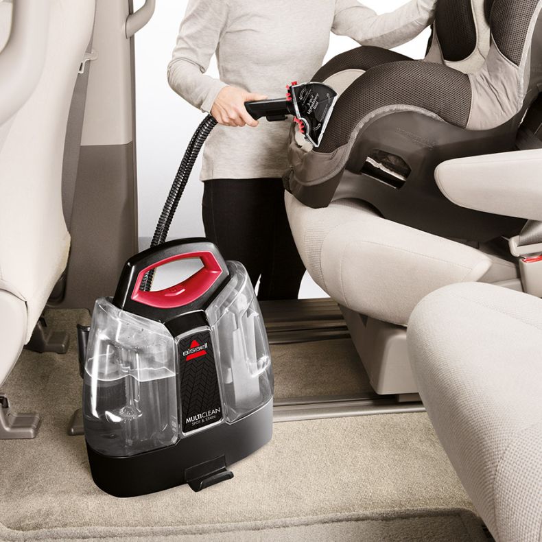 El limpiador de moquetas y tapicería portátil MultiClean TM Spot & Stain de BISSELL® está diseñado para eliminar con efectividad la arena, el polvo y la suciedad de los coches y dejar como nuevos los asientos y la tapicería. La manguera larga y flexible y los accesorios que lo acompañan están diseñados para ayudarte a llegar a todos los lugares donde hay suciedad. Elimina la suciedad y las manchas solo con agua, dos fórmulas de BISSELL especialmente formuladas y cuatro herramientas especiales de limpieza con una potente succión. Dispone de una manguera larga y flexible (2,2 metros) para lograr una limpieza de mayor alcance para diferentes áreas de tu casa y tu coche. El limpiador contiene dos depósitos de agua extraíbles para un llenado y vaciado sencillos y facilitar así el proceso de limpieza. Gracias a la ligera y portátil Spot & Stain, finalmente es posible eliminar las manchas rápidamente a la primera.