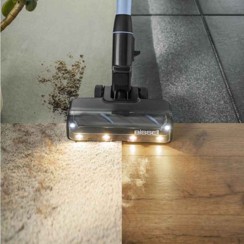BISSELL PowerClean FurFinder™ Select es la aspiradora definitiva para los dueños de mascotas. Con la herramienta FurFinder™, elimina hasta el 95 % del pelo de mascotas incrustado, mientras que la tecnología de luces FurFinder™ revela los pelos y restos ocultos. Su diseño que la mantiene de pie ofrece una comodidad inigualable, y la versatilidad 3 en 1 te permite cambiar entre los modos de escoba aspiradora y de mano con facilidad. Con un robusto motor de 200 W, elimina la suciedad seca en cualquier superficie. Es perfecto para interiores de automóviles y espacios difíciles de alcanzar. Con una batería extraíble que proporciona hasta 40 minutos de funcionamiento inalámbrico y un rodillo antienredos que reduce los enredos de pelo, es el compañero perfecto para un hogar impecable y apto para mascotas.