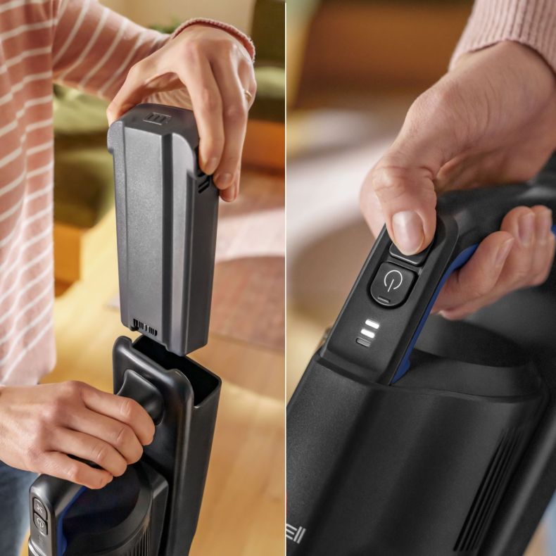 HASTA 50 MIN DE LIMPIEZA INALÁMBRICA Y BATERÍA EXTRAÍBLE: libertad sin cable durante hasta 50 min con el aspirador de mano en modo eco. Batería extraíble para cargarla cómodamente en menos de 3 horas.