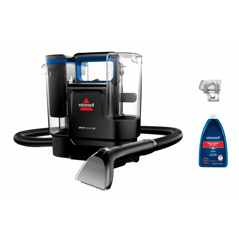 Presentamos SpotClean® C5 de BISSELL®, tu potente compañero para eliminar las manchas más resistentes con facilidad. Este limpiador de manchas compacto cuenta con una capacidad de succión superior, eliminando manchas de tapicerías, alfombras e interior de automóviles. Su innovador sistema de limpieza de triple acción garantiza una limpieza profunda y eficaz en distintas superficies. La manguera incorporada extralarga de 1,7 metros con la herramienta para manchas difíciles de 10 cm te permite llegar a cualquier punto en cualquier momento, y la herramienta HydroRinse incluida proporciona una cómoda limpieza posterior. El diseño ligero y compacto de SpotClean® C5 permite una limpieza y un almacenamiento fáciles.