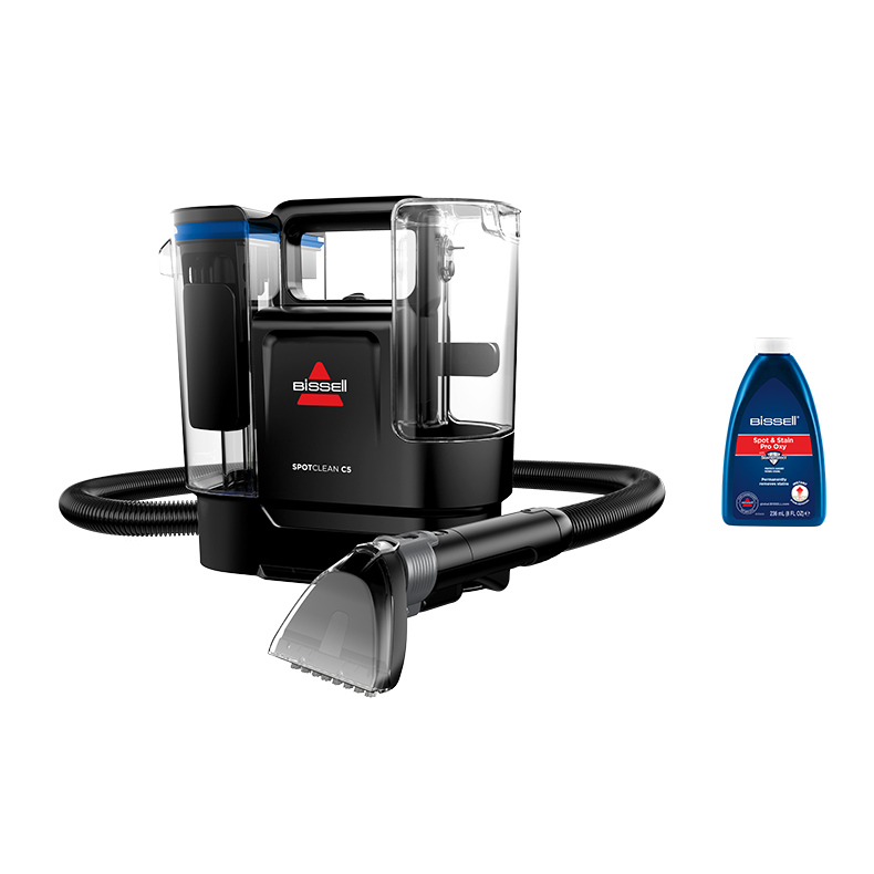 Presentamos SpotClean® C5 Select de BISSELL®, tu potente compañero para eliminar las manchas más resistentes con facilidad. Este limpiador de manchas compacto cuenta con una capacidad de succión superior, eliminando manchas de tapicerías, alfombras e interior de automóviles. Su innovador sistema de limpieza de triple acción garantiza una limpieza profunda y eficaz en distintas superficies. La manguera incorporada extralarga de 1,7 metros con la herramienta de 10 cm para manchas difíciles te permite llegar a cualquier punto en cualquier momento, y la herramienta HydroRinse incluida proporciona una cómoda limpieza posterior. El diseño ligero y compacto de SpotClean® C5 Select permite una limpieza y un almacenamiento fáciles.